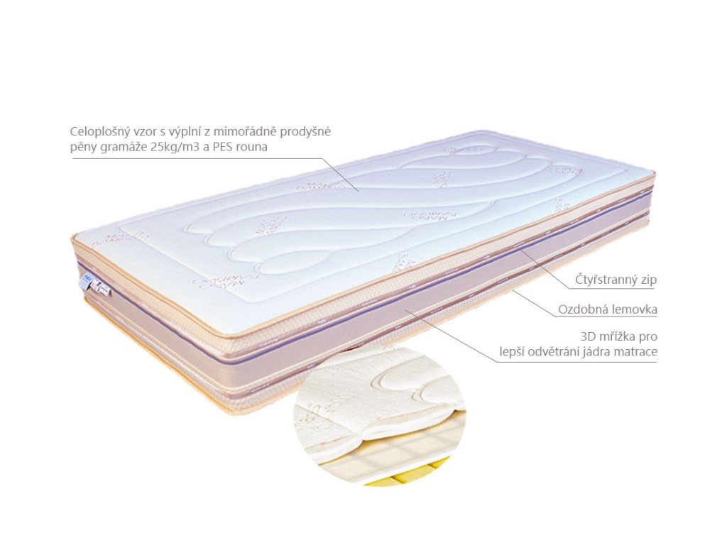 Podle materiálu: | Matrace z přírodních materiálů, Latexové matrace, HR studená pěna |