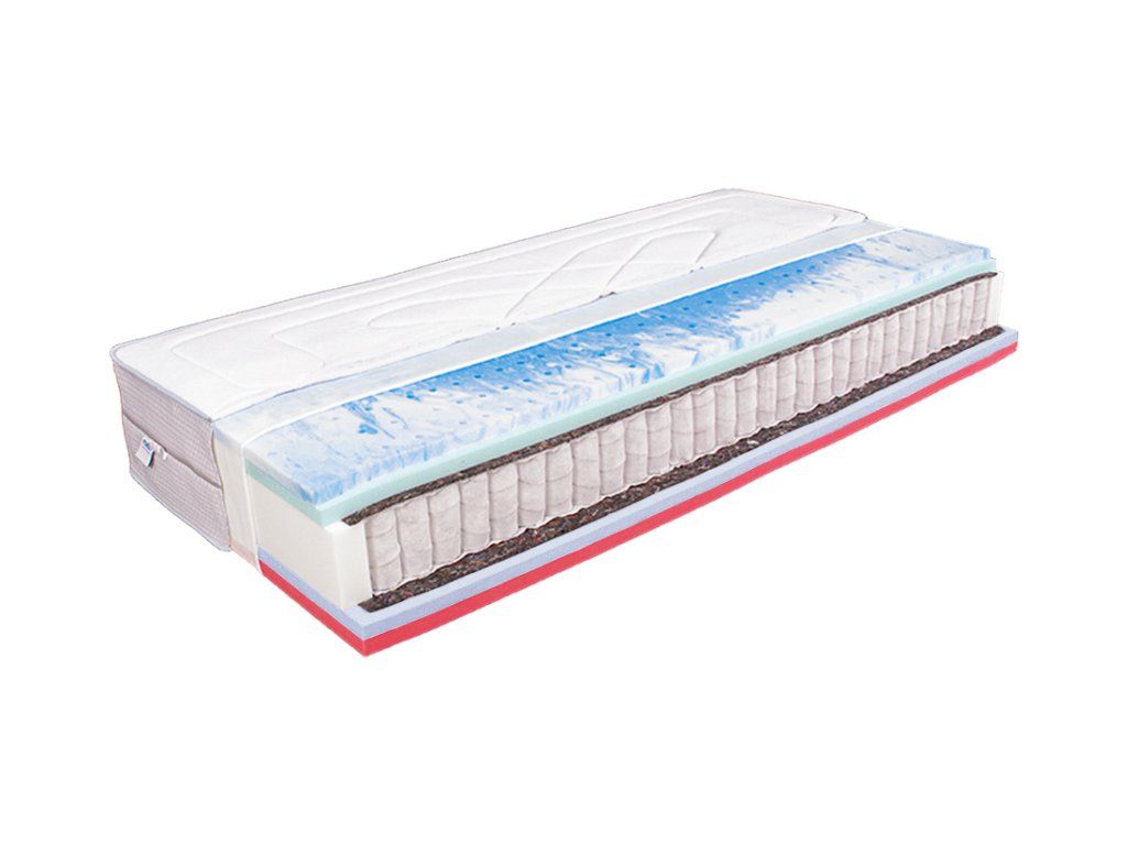 Very comfortable spring mattress with antibacterial treatment. The height of the mattress in the cover is 27 cm, which significantly increases the comfort of lying down. The lying layers of the mattress are designed with holes so that they perfectly wick moisture away from the body. The harder side is made of antibacterial foam with a weight of 32kg/m3, the softer side is made of extremely breathable new generation HR foam with a weight of 43kg/m3. Quality bag core with 380 springs. The core is protected by a separation knit.
