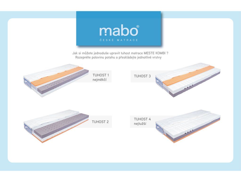 Very variable mattress made of top quality cold foam. This foam is very stable and elastic due to its high weight. Thanks to this foam, the mattress is very durable and does not change its properties in the long term, which is evidenced by a certificate from an accredited testing laboratory. A softening layer of various optional materials is also inserted into the mattress. This bedding layer creates a pleasant mattress surface and significantly improves breathability. A sufficiently breathable mattress ensures an optimal dry environment between the surface of the mattress and the skin.