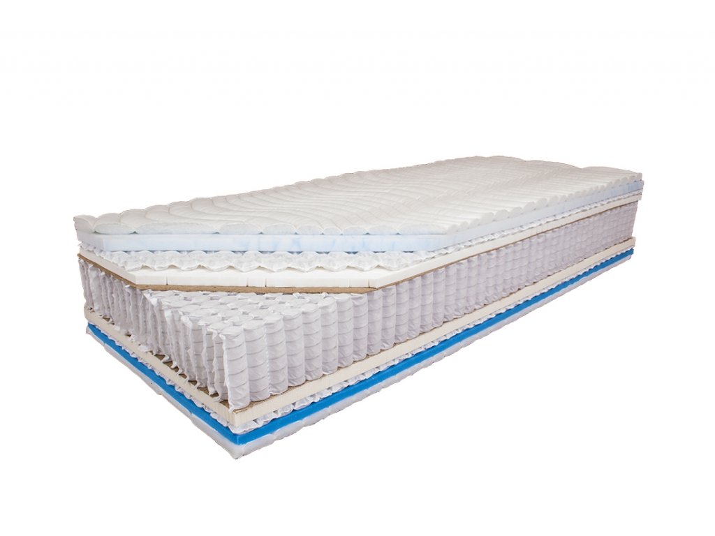 Uvnitř jsou pouze špičkové materiály jako je 15 cm vysoká taštičková pružina s vysokým počtem pružinek (1000 ks), hustě perforované latexové desky vysokou gramáží a optimální měkkostí. Změkčující nano pružinky pod povrchem umožňují lepší cirkulaci vzduchu. Horní vrstvy z výjimečných vysokogramážových pěn EUCAFEEL a BREEZE. Pěna EUCAFEEL je high-tech HR studená pěna (45 kg/m3) měkká jako peříčko s nekonečnou životností. BREEZE je viskoelastická pěna (50 kg/m3) s mimořádnou prodyšností. Byla naměřena 6x vyšší prodyšnost ve srovnání s běžnou viskoelastickou pěnou.