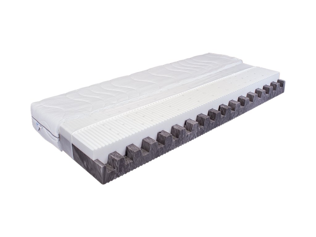 Nové unikátní provedení potahů s velkým celoplošným vzorem podle nejnovějších trendů. Tyto potahy jsou pevnější, odolnější a především zvyšují komfort ležení. Díky jedinečným použitým materiálům si potah udržuje dlouhodobě svůj tvar a plastický vzor na rozdíl od potahů s PES rounem. Celková gramáž výplně je u potahu MITCH 470 gr/m2. Pro výplň používáme speciální, pro tento účel vyvinutou elastickou a prodyšnou pěnu s vysokou gramáží (25 kg/m3). Ta dodává potahu potřebnou pružnost. Matrace je vhodná na lamelový rošt nebo pevnou podložku.