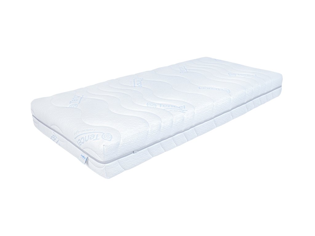 Tencel - potah s vláknem z Tenclu, ten je extrahován z dřevní hmoty a má mnohem lepší absorpční vlastnosti než bavlna. Potah je dělitelný zipem na dvě poloviny. Plošný prošev PES rounem. Potah je pratelný při 40ºC. Výška matrace v potahu Tencel (↨ 22 cm)