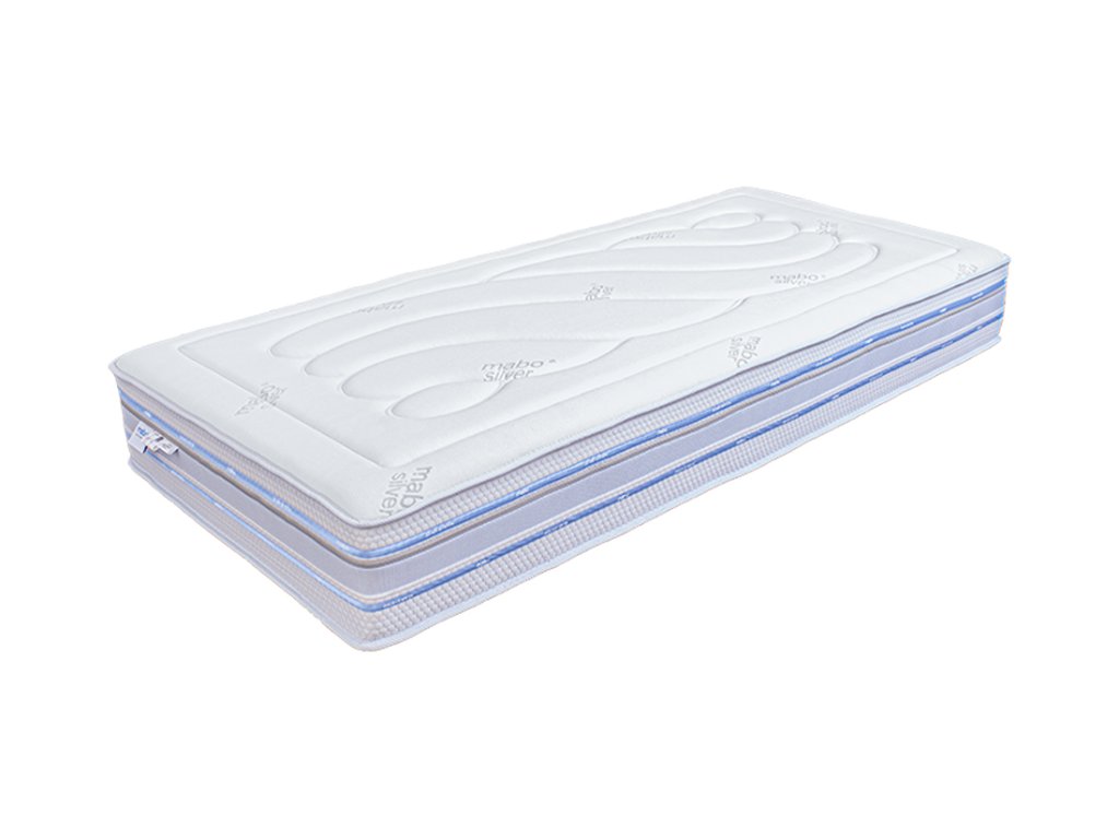 Silver - potah s stříbrem je vyroben z polyesteru a viskózy - lyocell. Lyocell se na dotek podobá hedvábí a struktura připomíná polyester, chladí jako plátno a hřeje jako vlna. Vyniká mimořádnou absorpční schopností a lehkostí. Ionty stříbra aktivně působí proti bakteriím. Výška matrace v potahu SILVER (↨ 26 cm)
